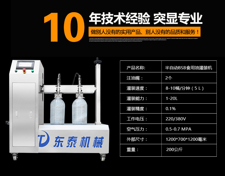 本機(jī)適用于花生油、大豆油、菜籽油、色拉油、芝麻油、石油化工潤滑油等各種油類和粘稠液體的定量要求。半自動(dòng)雙頭電動(dòng)BSB食用油灌裝機(jī):采用的微電腦技術(shù),自備動(dòng)力,管路無需加壓,節(jié)約運(yùn)行成本;自動(dòng)檢測(cè)油浙、自動(dòng)修正溫度變化引起的密度變化,適合大溫差環(huán)境的油品灌裝工作,使用方便靈活;機(jī)電一體化設(shè)計(jì),安裝方便,整機(jī)價(jià)格低廉。